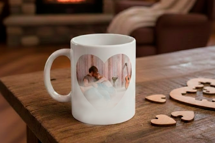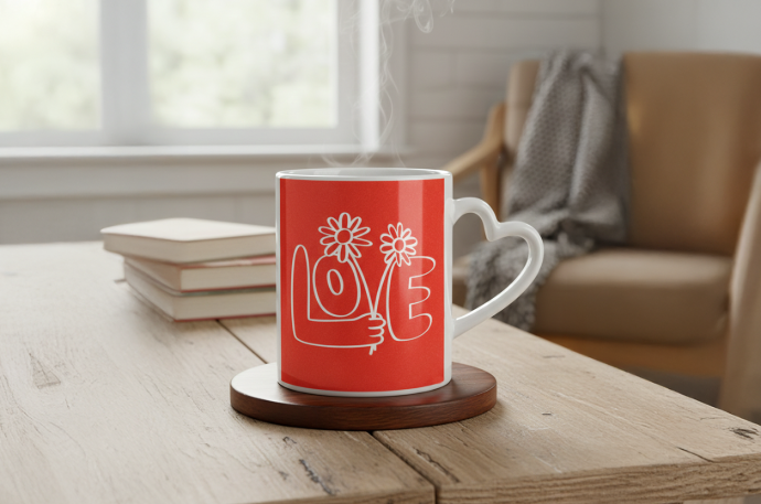 Taza de cerámica con asa de corazón