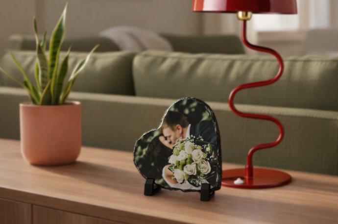 Portafotos de pizarra forma de corazón